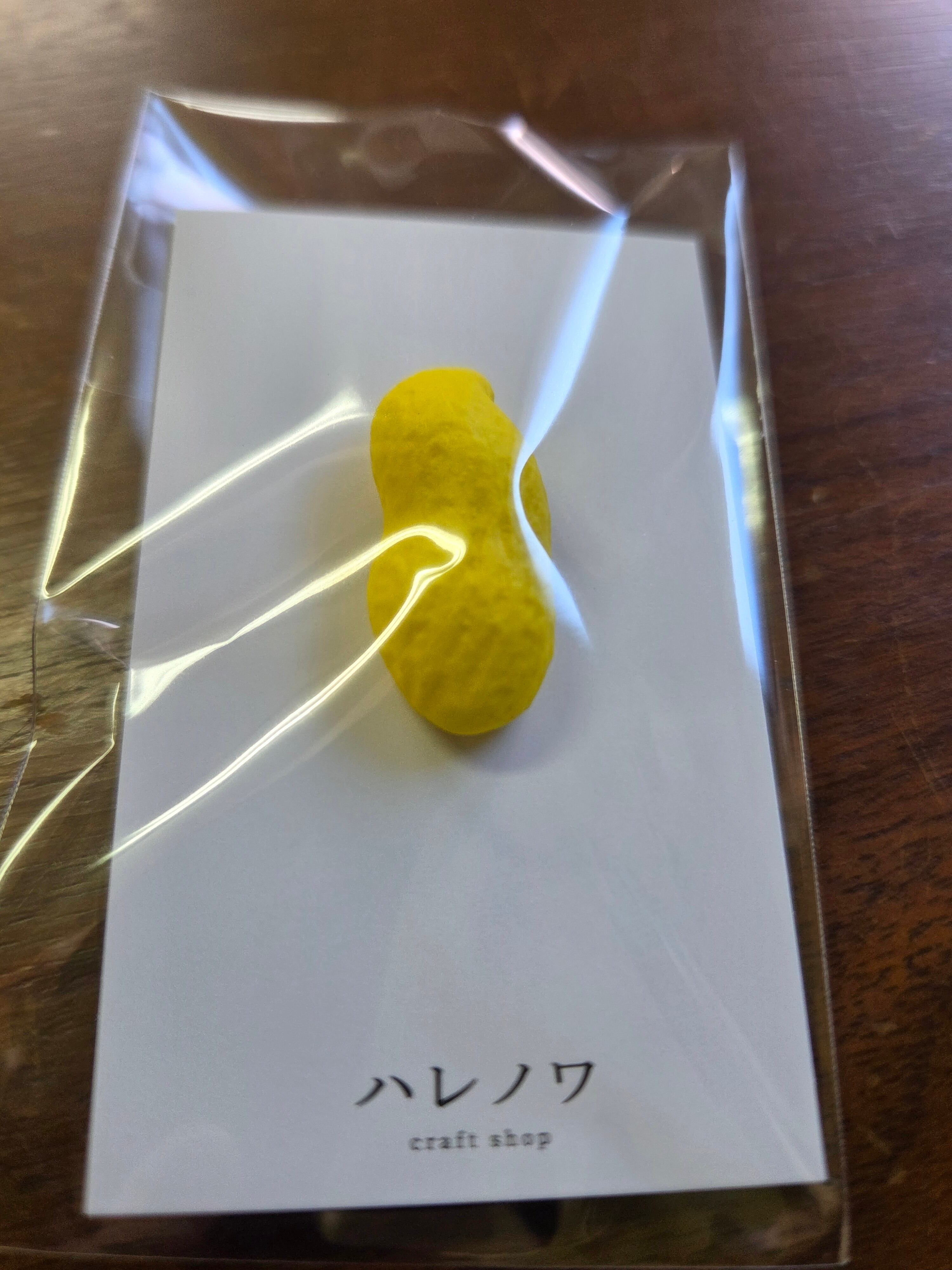 レジンで作られています。特別感満載の『ピーナッツピンバッジ』です!このピンバッジは、本物のピーナッツから型どりを行い、たった20個の限定生産となっています。これにより、世界に20個しか存在しない貴重なアイテムとなりました。
